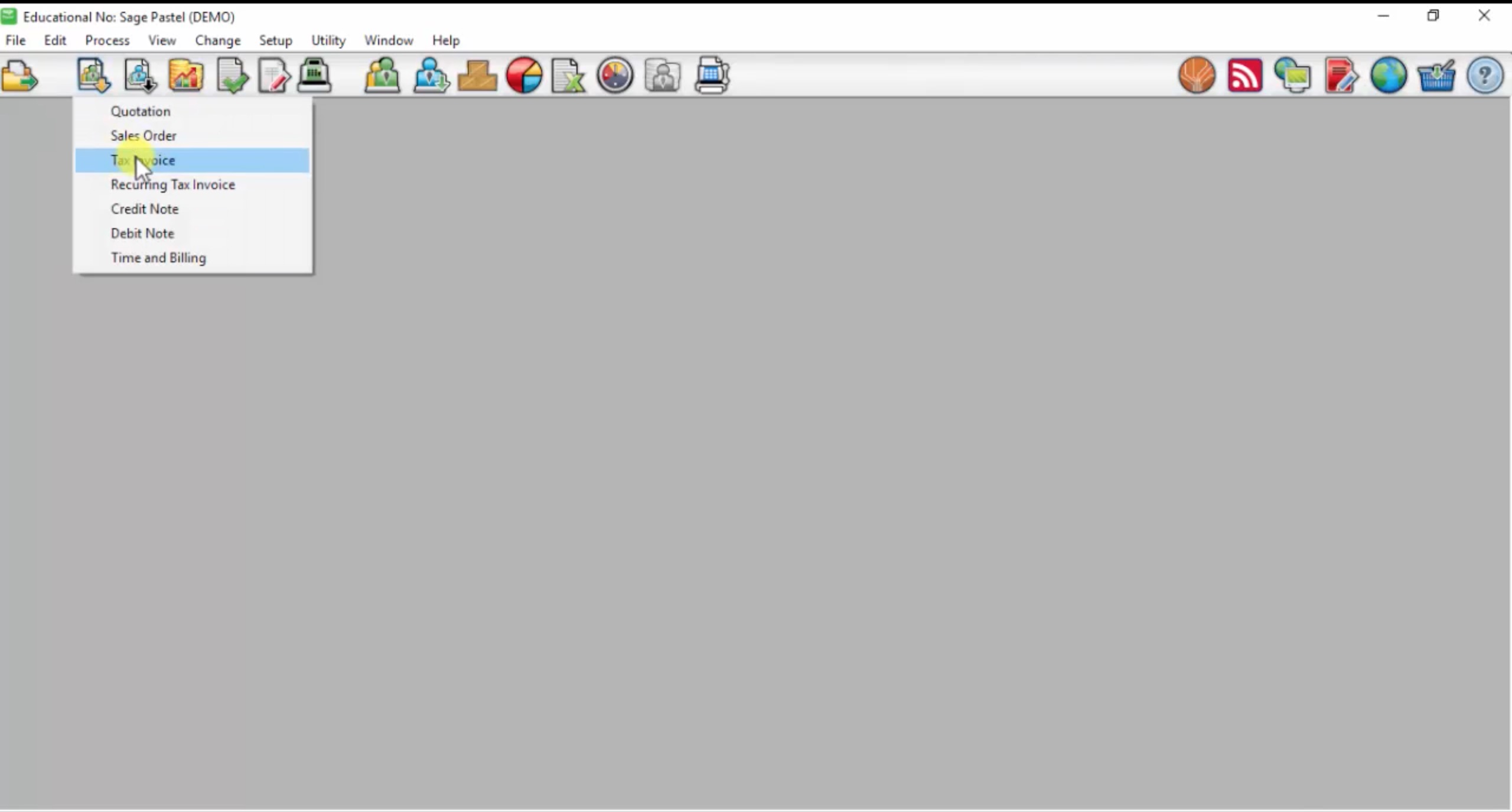To create a tax invoice you would select PROCESS > CUSTOMERS on the menu.
